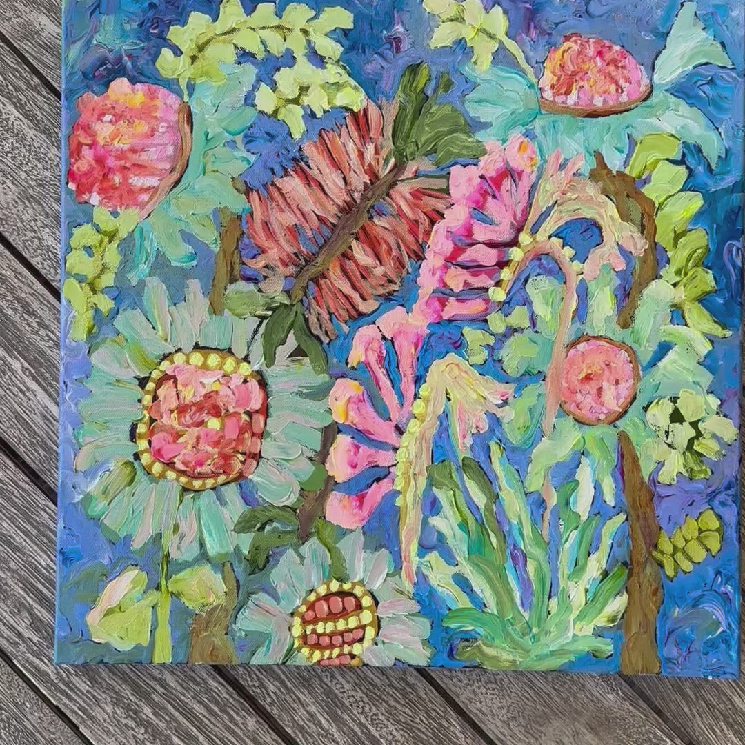 Little Darlings is a delightful original acrylic painting on stretched canvas measuring 50cmx50cmx5cm.