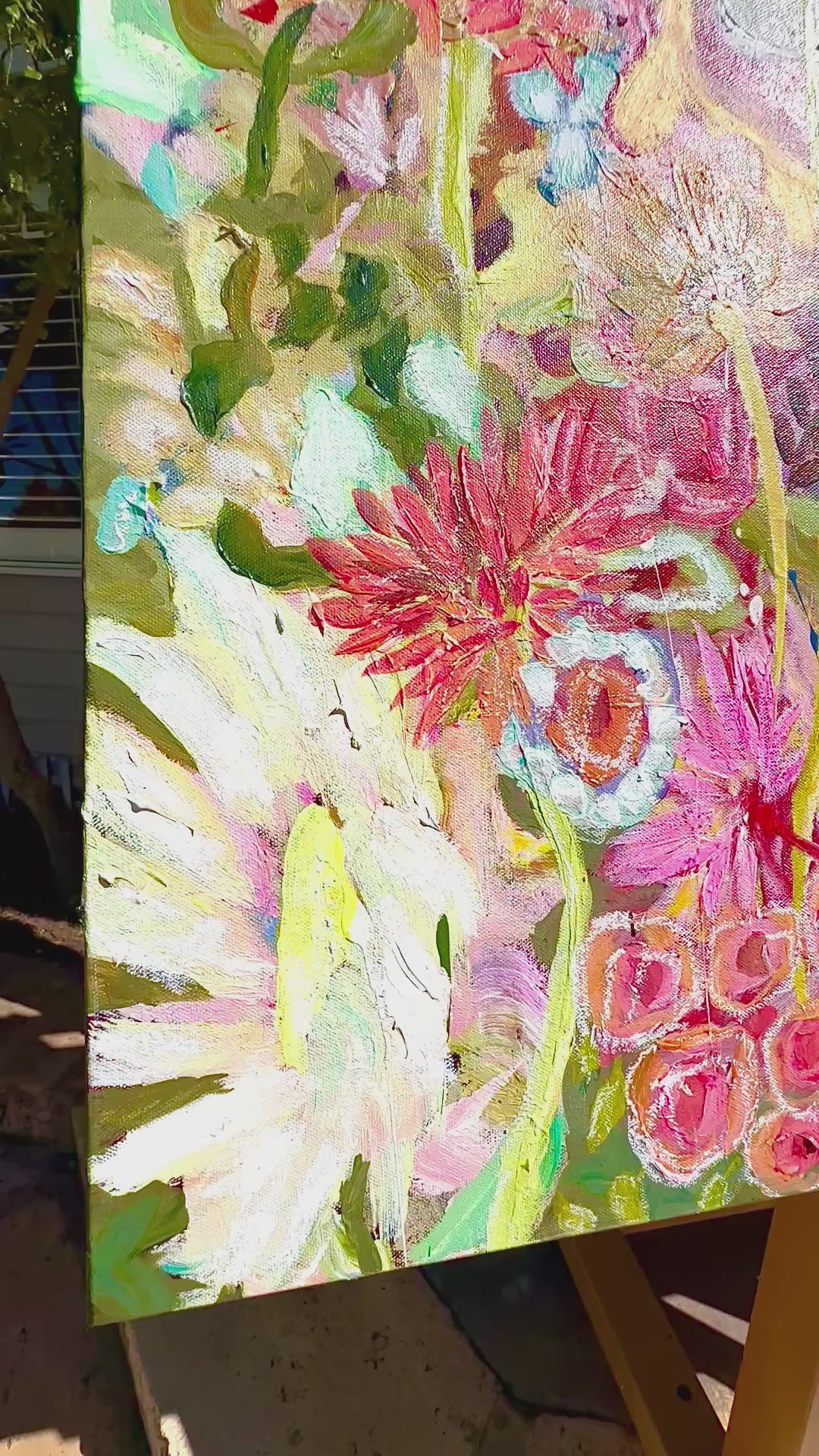 Fiddle-Dee-Dee will give your home or office a touch of whimsical glamour! With its warm colour palette and added touches of a shimmering gold finish, Fiddle-Dee-Dee exudes happy vibes and will be your perfect new addition to your space! ~ a delightful original mixed media on stretched canvas ready to hang, measuring 153cm x 76cm x 4cm (unframed)
